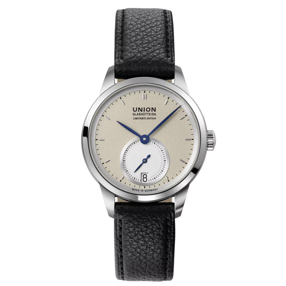 Zum 180. Geburtstag von Johannes Dürrstein präsentiert Union Glashütte mit der „Kleinen Sekunde“ ein Modell, das die Werte des Hauses in zeitloser Eleganz verkörpert. Inspiriert von historischen Vorbildern und Jubiläumsdesigns verbindet die Uhr klassische Glashütter Elemente mit moderner Raffinesse. Das taupefarbene Zifferblatt strahlt schlichte Eleganz aus, akzentuiert durch die kleine Sekunde bei 6 Uhr. Gebläute Stahlzeiger setzen edle Kontraste, während entspiegeltes Saphirglas und ein poliertes Edelstahlgehäuse für perfekte Ablesbarkeit und zeitlose Linien sorgen. Im Inneren arbeitet das Automatikwerk U2895-2 mit 42 Stunden Gangreserve und Datumsfenster unterhalb der kleinen Sekunde – Funktionalität und Ästhetik auf höchstem Niveau. Ein schwarzes Kalbslederband mit markanter Narbung rundet das elegante Gesamtbild ab. Die Uhr ist ein Statement für Understatement: klassisch, technisch aktuell und ideal für Liebhaber traditioneller Uhrmacherkunst.