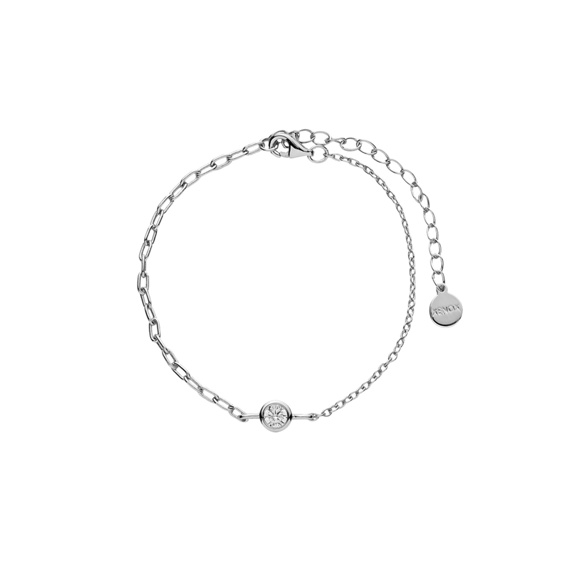 Armband 925er Sterlingsilber rhodiniert. Rundes Element in der Mitte mit Zirkonia Stein besetzt.