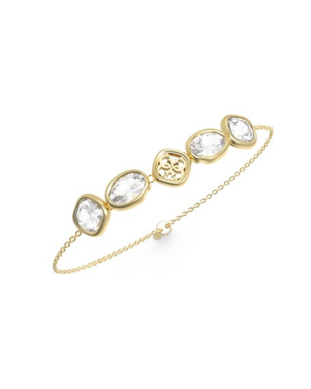 Armband aus Edelstahl, vier große Kristall-Charms. Guess Logo mittig.