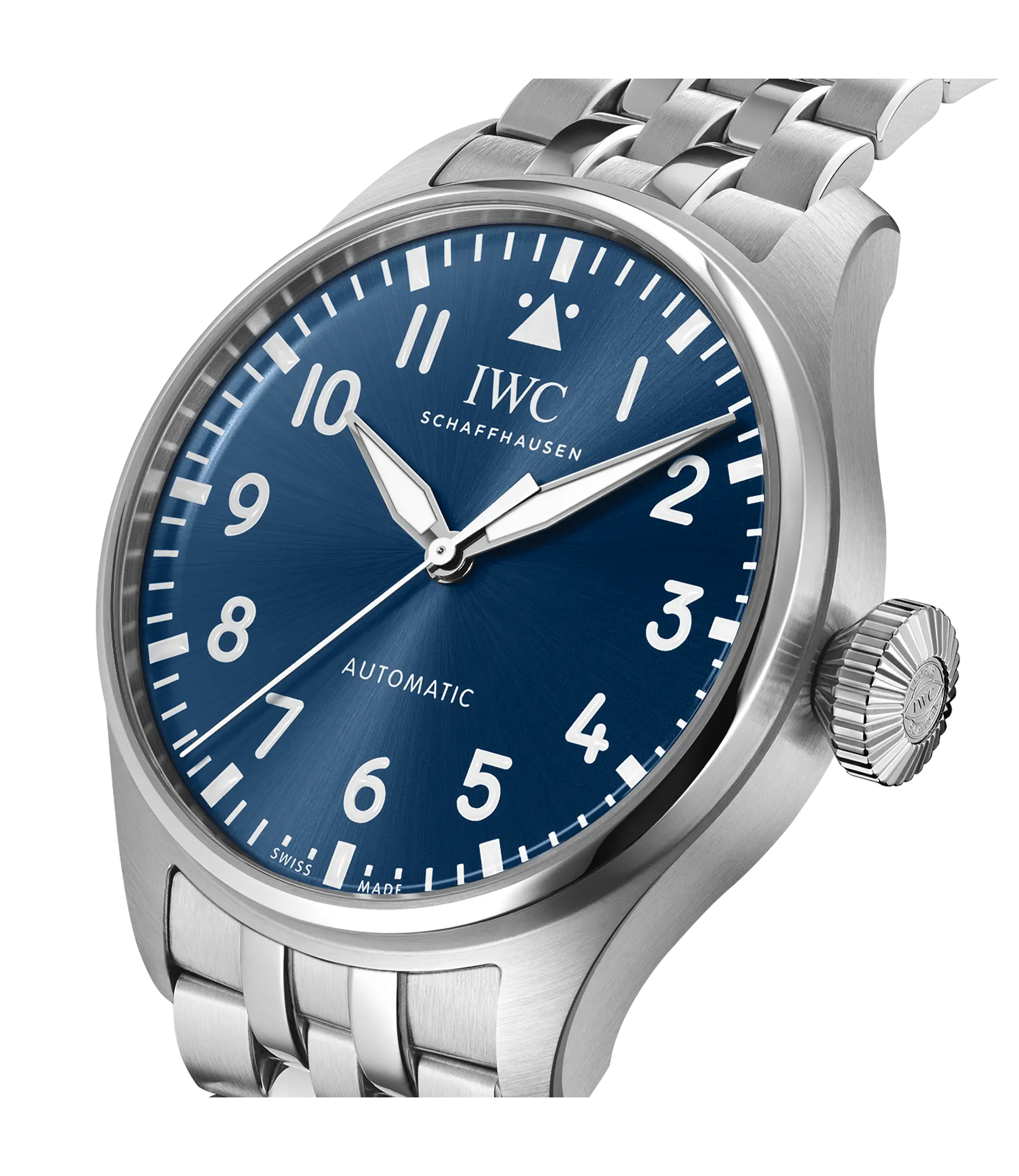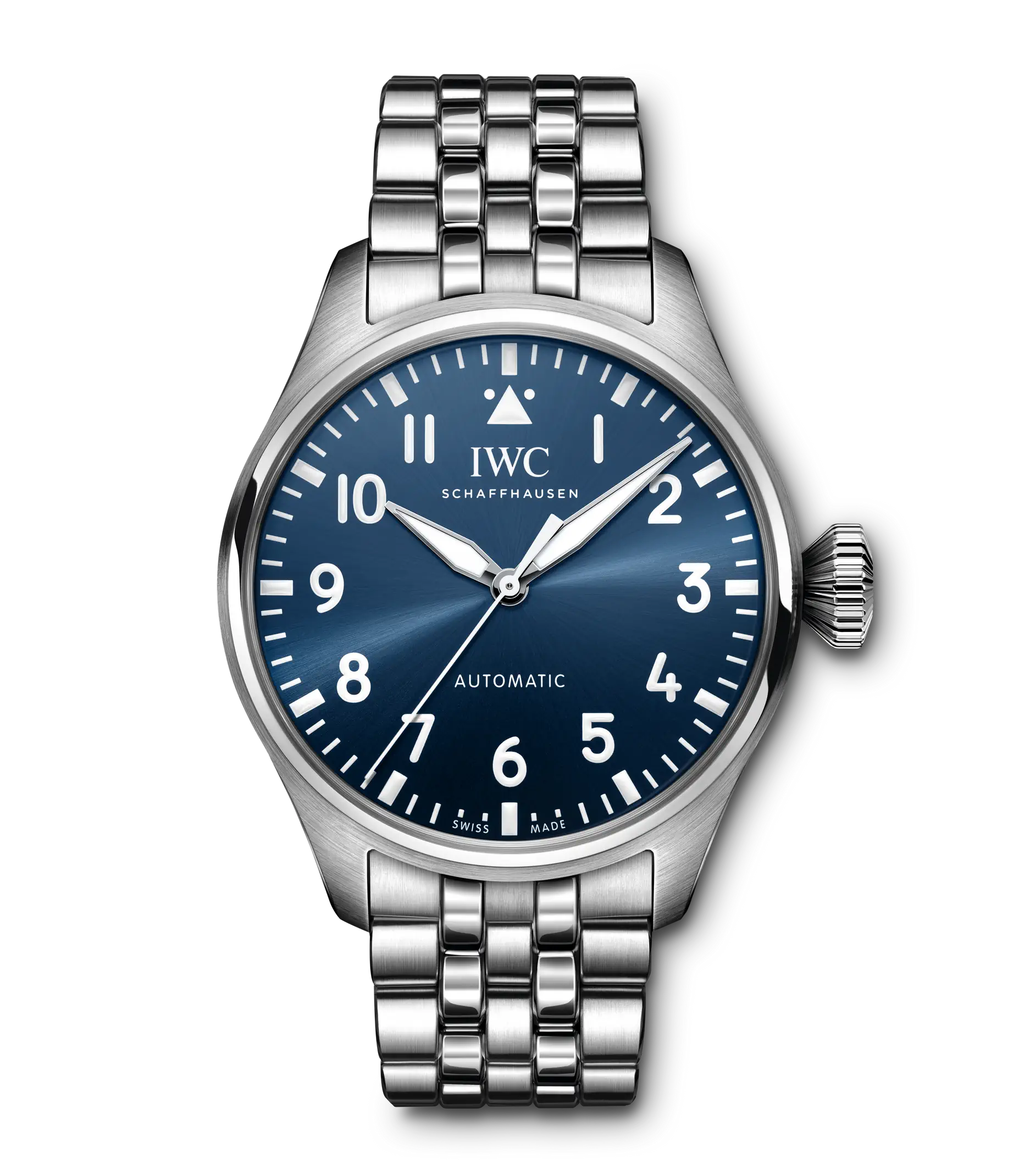 Die Big Pilot´s Watch 43 verbindet ikonisches Design mit feinster Werktechnik und ausgeprägter Vielseitigkeit in einem ergonomischen Gehäusedurchmesser von 43mm. Kein anderes Modell verkörpert die Faszination der Fliegeruhren von IWC Schaffhausen wie die Big Pilot´s Watch. Das funktionale Design im Stil eines einfach ablesbaren Cockpit-Instruments und die übergroße Kegelkrone wurden von einer militärischen Beobachtungsuhr aus den 1940er-Jahren inspiriert. Die Big Pilot´s Watch 43 ist eine puristische Interpretation dieses ursprünglichen Designs ohne zusätzliche Elemente auf dem Zifferblatt in einem 43mm-Edelstahlgehäuse, das eine erstaunliche Präsenz am Handgelenk mit höchstem Tragekomfort verbindet. Dieses Modell verfügt über ein blaues Zifferblatt, rhodinierte Zeiger und ein Edelstahlband. Durch den Saphirglasboden ist das IWC-Manufakturkaliber 82100 sichtbar. Der Pellaton-Aufzug wurde mit Keramikkomponenten verstärkt und baut eine Gangreserve von 60 Stunden auf. Für Flexibilität sorgt das praktische EasX-CHANGE System sowie eine Auswahl von Armbändern aus Kalbsleder, Kautschuk oder Edelstahl. In Verbindung mit dem bis 10 bar wasserdichten Gehäuse macht es die Big Pilot´s Watch 43 zu einer modernen und vielseitigen Sportuhr.