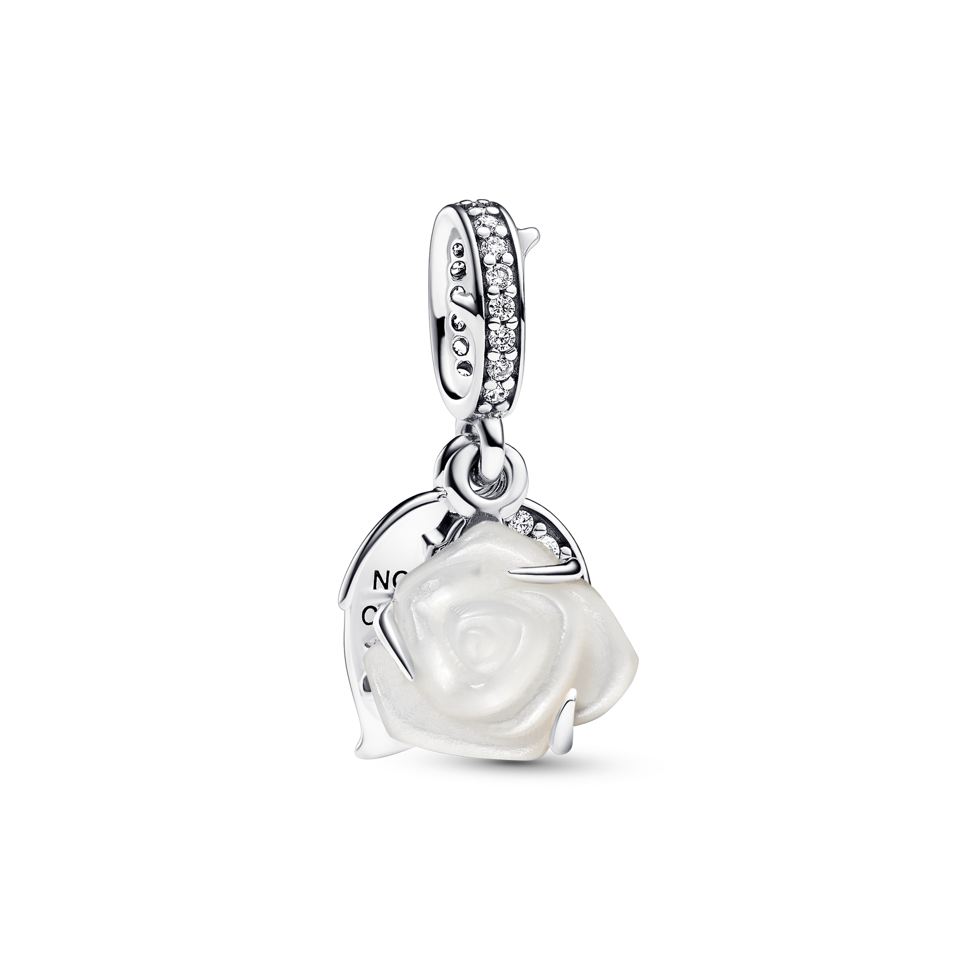Zeige Eleganz mit diesem Charm aus Sterling-Silber. Es ist eine Rose aus künstlichem Perlmutt aus Bioharz. Mit klaren Cubic Zirkonia besetzt. Die Gravur „NOTHING COMPARES TO YOU“ macht es persönlich. Die durchdachten Details, vom dornenbesetzten Aufhänger bis hin zu blattförmigen Scheiben, machen dieses Pandora Moments Charm zu einem bleibenden Symbol für reine Liebe.