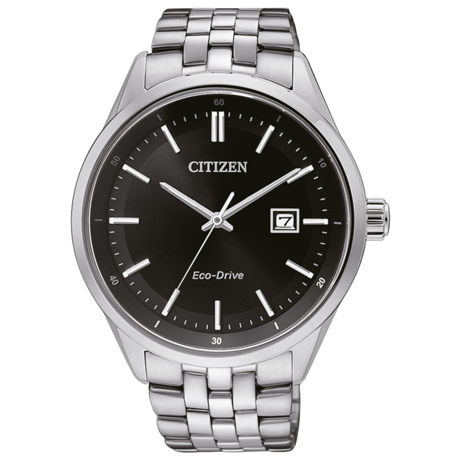Durchmesser 43mm, Eco-Drive, Gangreserve ca. 240 Tage, Datumsanzeige, Saphirglas, Edelstahl-Gehäuse, Edelstahl-Uhrband, Wasserdicht bis 10 Bar