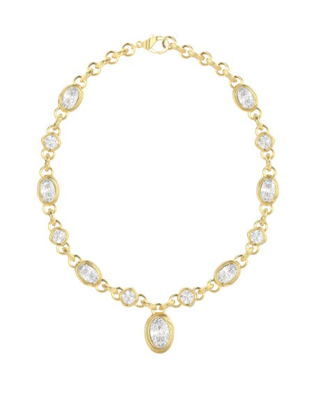 Collier aus plattiertem Stahl mit Zirkonia Steinen.