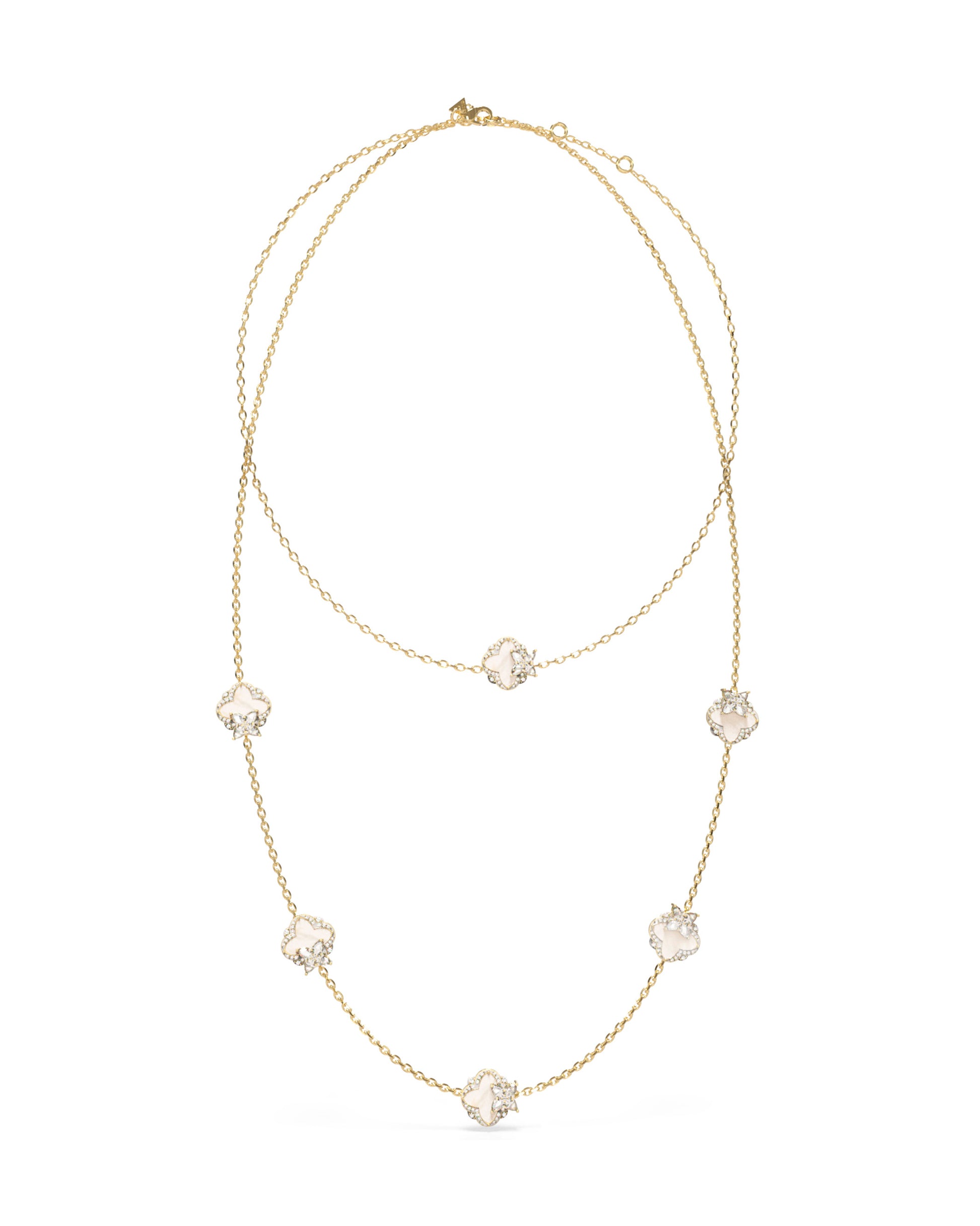 Collier aus vergoldetem Edelstahl mit Kristallen und Perlmutt. Zweireihig.
