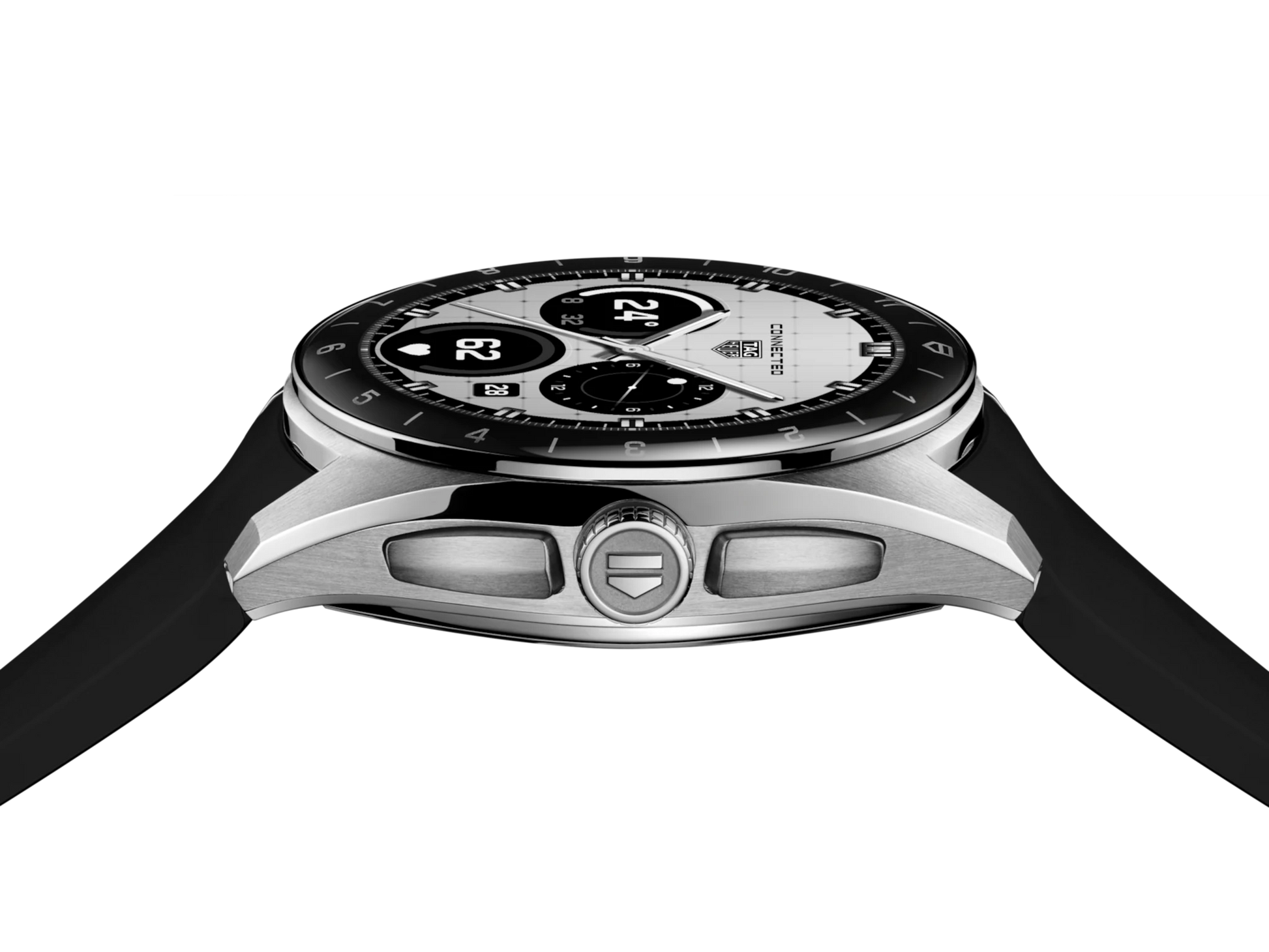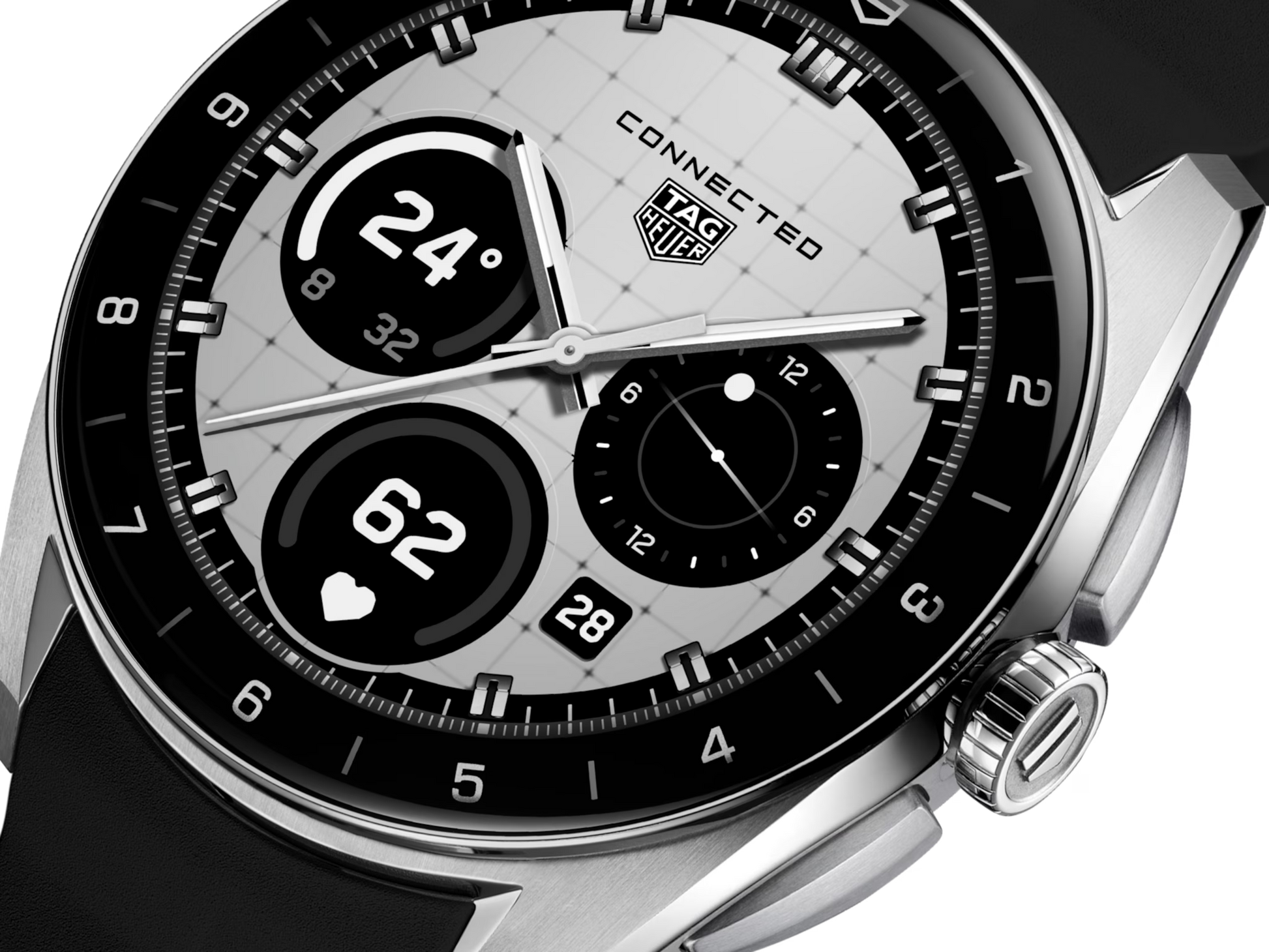 Die TAG Heuer Connected Calibre E5 definiert die Smartwatch neu, indem sie das uhrmacherische Erbe der Maison mit modernster digitaler Innovation verbindet. Die neue 40-mm-Größe mit integriertem Armband und einem raffinierten Gehäusedesign begleitet den Menschen den ganzen Tag über. Diese 40mm große Connected Watch verfügt über ein rundes Edelstahlgehäuse mit einem vielseitigen Design und ergonomisch geformten integrierten Edelstahldrückern. Das elegante Design wird durch integrierte Armbänder und ein gewölbtes Saphirglas akzentuiert. Erleben Sie das neue TAG Heuer OS, eine komplett selbst entwickelte Benutzeroberfläche, die eine nahtlose und intensive TAG Heuer Benutzererfahrung verspricht. Kommen Sie in den Genuss einer längeren Akkulaufzeit mit bis zu 2 Tagen im Energiesparmodus. Mit der Schnellaufladefunktion gewährleisten Sie bis zu einem Tag Autonomie in nur 30 Minuten. Diese Uhr bietet neue Wellness-Funktionen (Schlaf-Tracking, SpO2-Erfassung, Atemfrequenzanalyse und Herzfrequenzvariabilitätsmessungen)*. Die hochpräzise Aktivitätsmessung für Sport umfasst Herzfrequenzmessung, ein erstklassiges GPS und einen Höhenmesser.