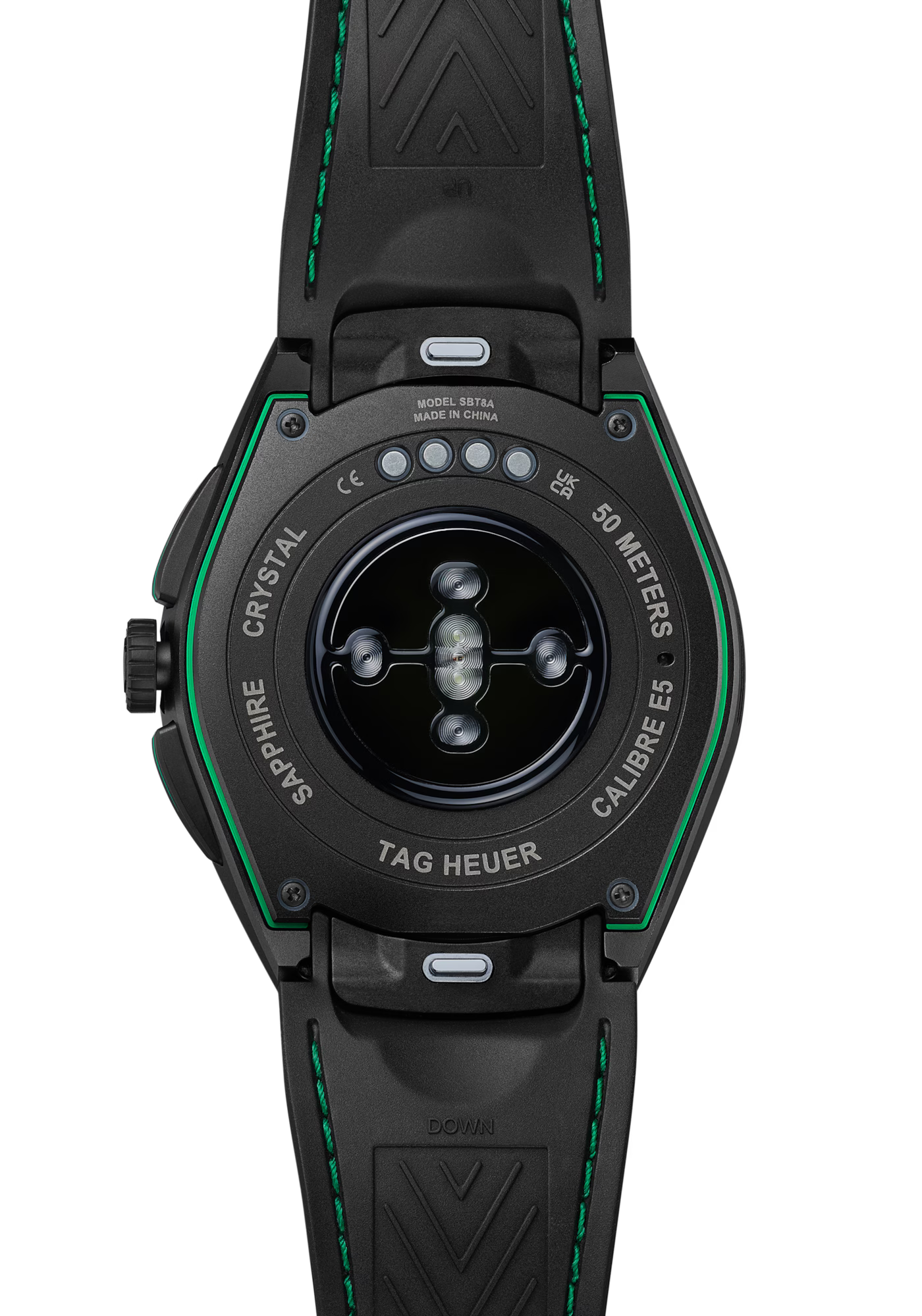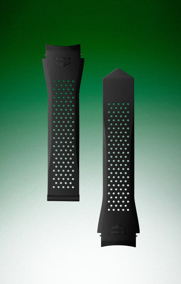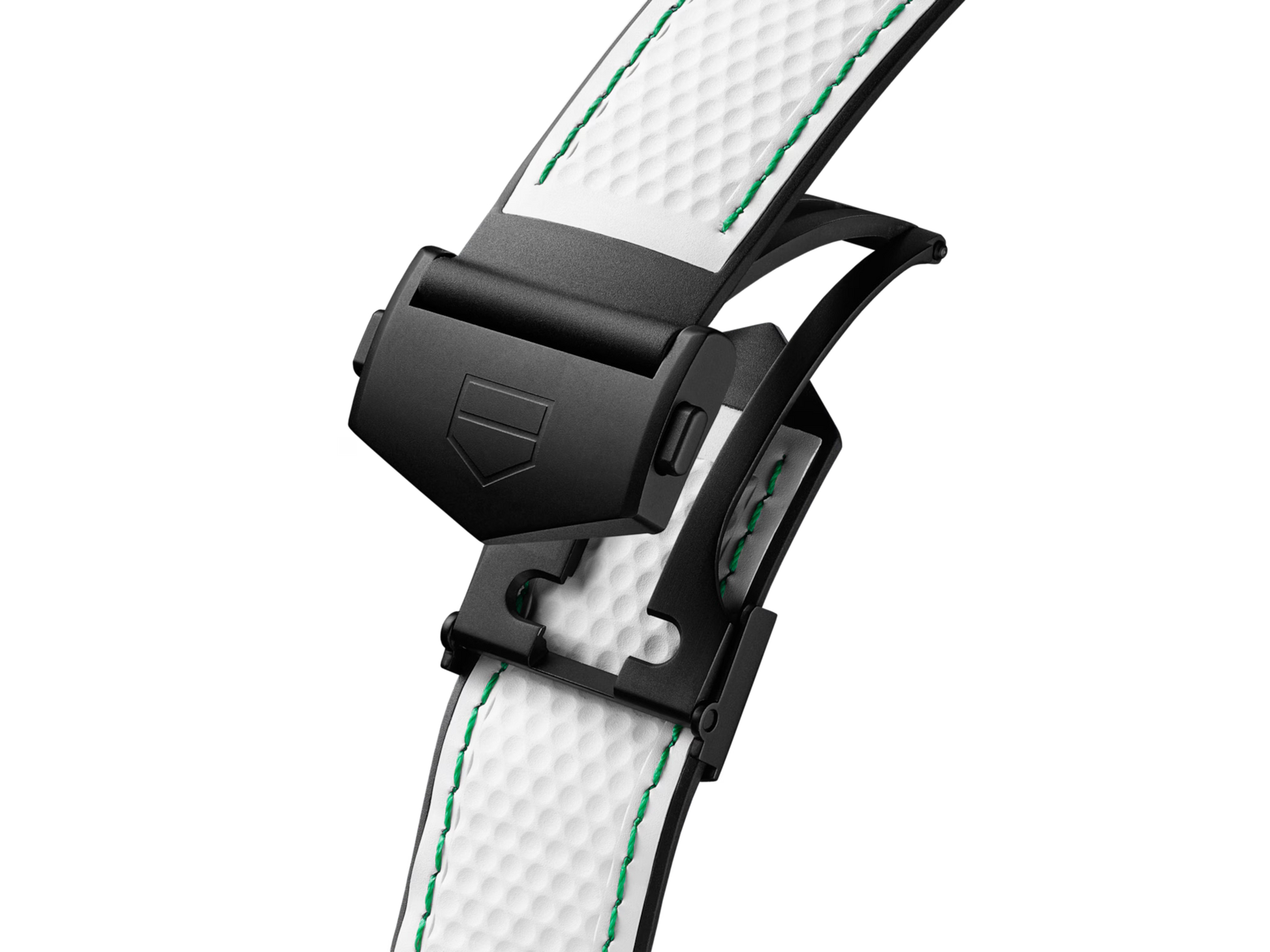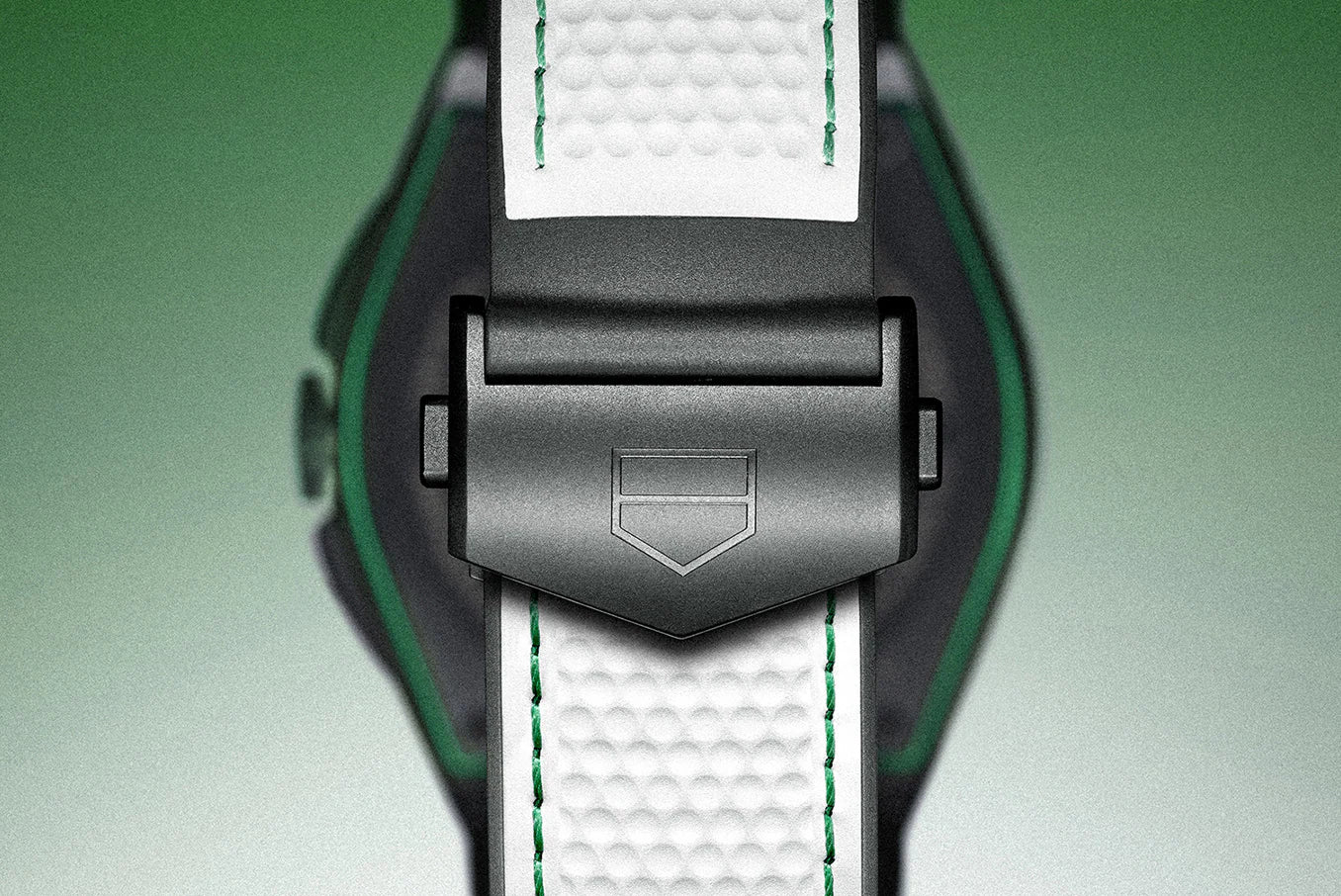 Die TAG Heuer Connected Calibre E5 Golf Edition (45mm) wurde für Golfenthusiasten entwickelt und verbindet Stil mit sportlicher Präzision. Mit ihrem schwarzen, sandgestrahlten Titangehäuse mit 18-Loch-Gravur auf der Lünette und der speziellen Golf-App erweist sie sich auf dem Golfplatz als verlässliche Partnerin. Dieses Modell optimiert das Spielerlebnis mit detailliertem Tracking und speziellen TAG Heuer-Funktionen. Die 18-Loch-Gravur auf der Lünette, die weißen und grünen Akzente und das Armband mit Golfballmuster führen Design und Sport zusammen und versprechen einen Stil, der auf und neben dem Platz auffällt. Mit Unterstützung durch das TAG Heuer OS, eine komplett selbst entwickelte Benutzeroberfläche, integriert diese Smartwatch fortschrittliche Sensoren, GPS und eine Golf-App, die automatisches Scoring, ein neues vollständiges Lochlayout mit automatischem Zoom und detaillierte Spielstatistiken für ein optimiertes Spiel bietet und Ihnen hilft, Ihre Grenzen zu überschreiten. Das robuste und dennoch leichte Gehäuse aus sandgestrahltem Titan mit schwarzer DLC-Beschichtung und die ergonomischen Drücker vereinen robusten Komfort mit einem eleganten Design. Auswechselbare Armbänder erhöhen die Vielseitigkeit und damit den Übergang vom Golfplatz zum Clubhaus. Profitieren Sie von einer Akkulaufzeit von bis zu 3 Tagen im Energiesparmodus und einer Schnellladefunktion, die in nur 30 Minuten einen ganzen Tag Nutzung verspricht. Die neue Golf Edition wurde speziell für anspruchsvolle Golfer entwickelt. Ihre neue weiße Verpackung ist ebenso verheißungsvoll wie die Uhr selbst. Mit dem zusätzlichen schwarzen Armband, das Ihren Look für jede Gelegenheit vervollständigt, sorgen Sie auf und neben dem Platz für Hingucker.