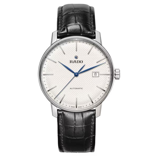 Die Coupole Classic Automatic vereint das Design einer traditionellen Armbanduhr mit dem für Rado charakteristischen Saphirglas und garantiert so exzellenten Glanz, gute Lesbarkeit und ultimativen Schutz für die edlen Zifferblätter. Durchmesser 41mm, Automatik, 80 Stunden Gangreserve, Datumsanzeige, Edelstahlgehäuse, Lederband mit Faltschließe aus Edelstahl,