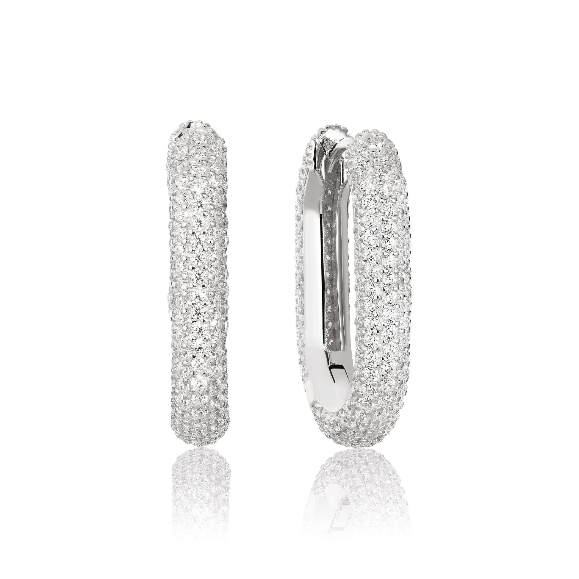 Creolen aus der exklusiven Capri-Serie aus 925er Sterlingsilber mit Rhodium, polierter Oberfläche und facettiertem weißem Zirkonia.