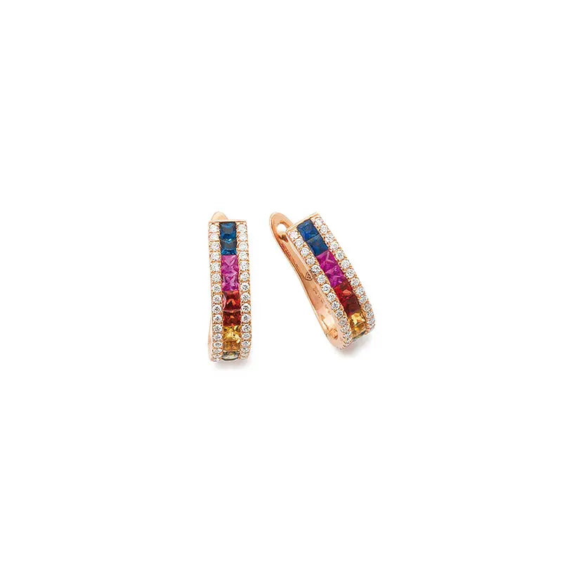 18kt Rosegold Ohrgehänge mit Saphire multi 4,25ct. total und Brillanten 0,31ct. total W/si Länge: ca....