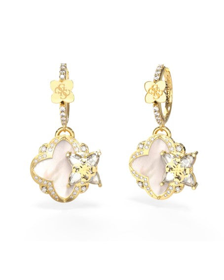 Creolen aus vergoldetem Edelstahl, mit Kristallen und Perlmutt.