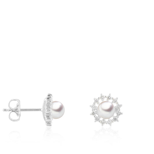 Ohrstecker in 18 kt Weißgold mit Akoya Perlen 4,5-5,0 mm und Brill. 0,23ct. W/si.