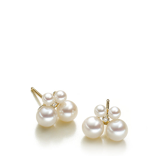 Ohrstecker in 14 kt Gelbgold mit Süßwasser Perlen von 2,5mm-5,5mm und Brill. 0,01 ct W/si.