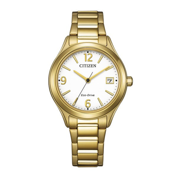Durchmesser 33,5mm, Eco Drive, 240 Tage Gangreserve, Datumsanzeige, Edelstahlgehäuse - goldfarben, Edelstahlarmband - goldfarben, Wasserdicht bis 5bar,