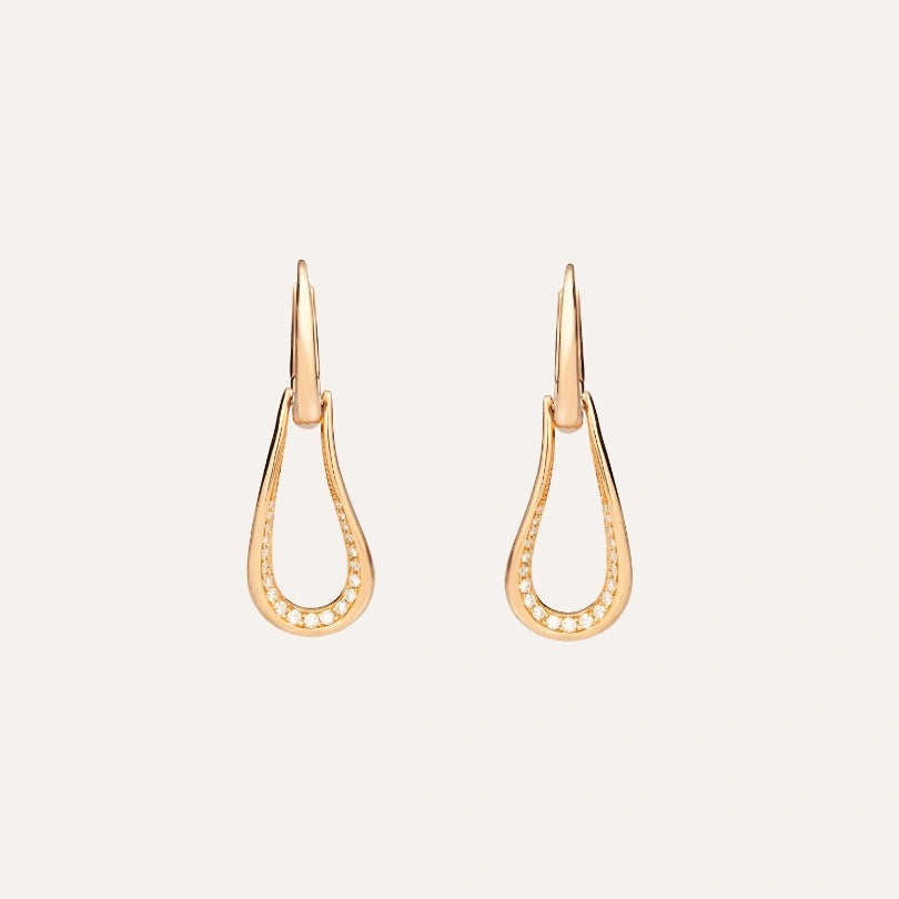 Pomellato präsentiert die Fantina-Ohrringe aus Roségold und Diamanten. Durch das minimalistische und raffinierte Design passen sie zu jedem Alltagslook.