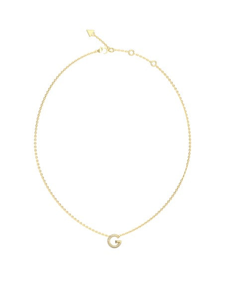 Halskette aus plattiertem Edelstahl. Mittiger Guess-Logo-Charm mit Pavé-Verzierung. Charm mit Kristallen besetzt.