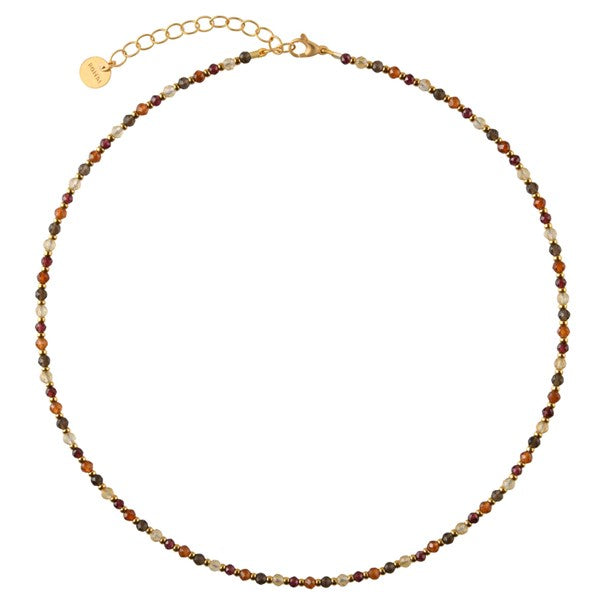 Halskette Silber vergoldet mit Rauchquarz, Granat Hessonit, Citrin, und Miyuki-Glasperlen.