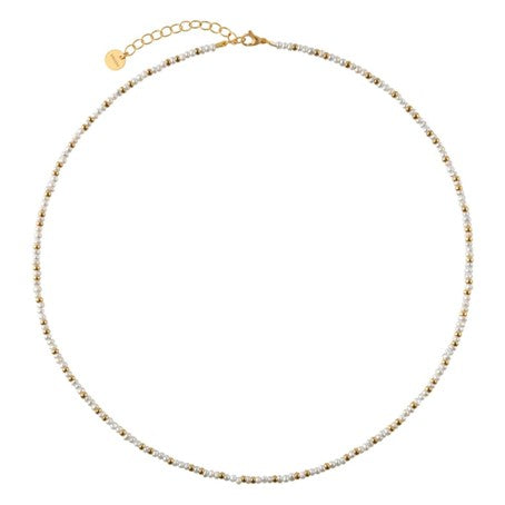 Halskette Silber vergoldet poliert, mit weißen Süßwasser Zuchtperlen ,und Miyuki-Glasperlen.