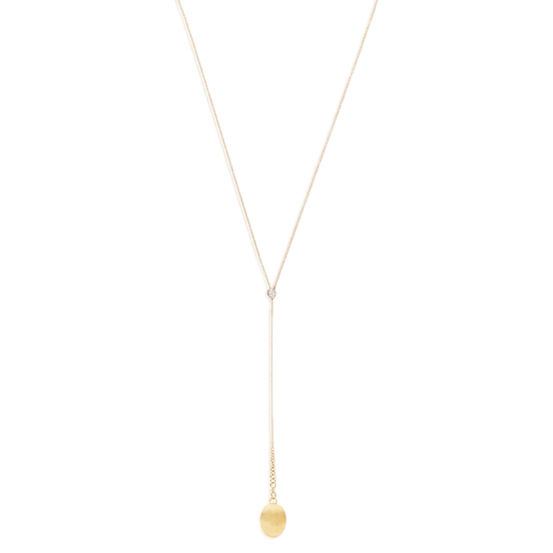 Eine zarte Kugel aus handgraviertem 18kt Gold, gekrönt von Diamanten Tropfen, erweckt einen einfachen und gleichzeitig ausgefallenen Hänger zum Leben, und versteckt vor Allem ein extremes Niveau an Vielseitigkeit. Ein kleiner rückseitig angebrachter Goldring und ein dafür vorgesehenes Loch durch das Innere der Kugel mit Diamanten ermöglichen es, die Kette auf viele verschiedene Arten einzustellen, was zahllose Möglichkeiten eröffnet, diesen Schmuck zu interpretieren.