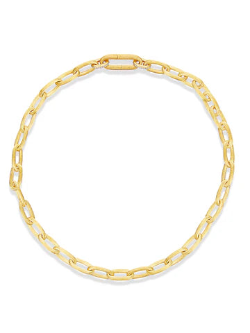 Hier ist unsere Kette…FREI! Eine Halskette aus 18kt Gold, vollständig von unseren Goldschmieden handgraviert, die dieses Schmuckstück mit ihren geschickten Händen glatt wie Seide werden lassen, und extrem leicht. Eine kostbare Umarmung, und von einzigartiger Eleganz.