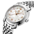Edelstahl, Edelstahlband, thermokompensiertes SuperQuartz™-Werk Kaliber Breitling 77, Perlmutt-Zifferblatt, Saphirglas, Durchmesser 32mm, wasserdicht bis 100m, zwei Jahre Garantie
