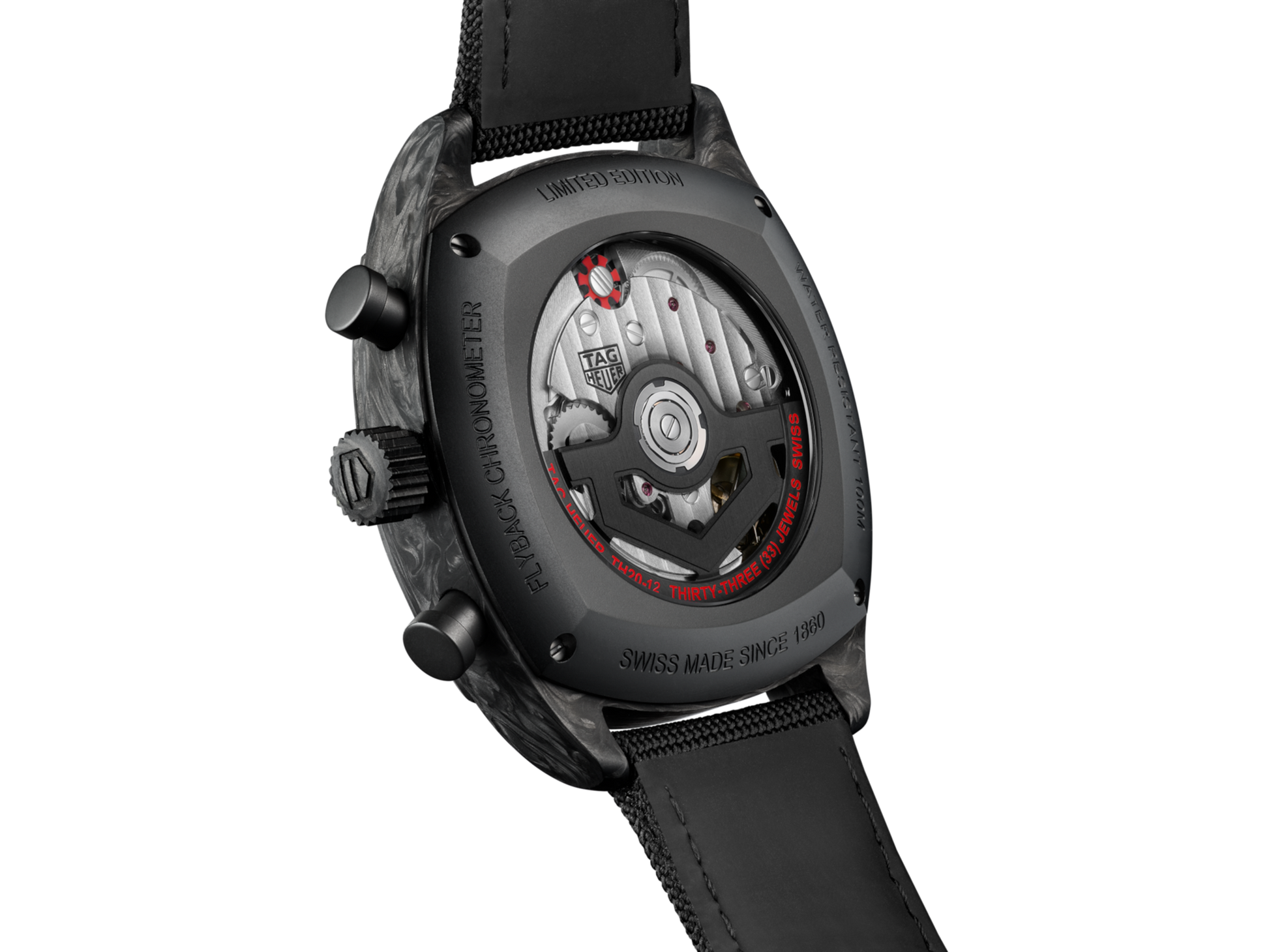 Carbon, schwarzes Textilband mit Faltschließe, Automatikwerk Manufakturkaliber HEUER02 COSC Flyback (Ref. TH20-12), Gangreserve ca. 80 Stunden, Chronograph mit Flyback-Funktion, Datumsanzeige, Saphirglas, Saphirglas-Sichtboden, Durchmesser 42mm, wasserdicht bis 100m, fünf Jahre Garantie, Spezialedition