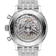 Edelstahl mit Platin-Lünette, Edelstahlband mit Doppel-Faltschließe, Automatikwerk Manufakturkaliber Breitling B19, Gangreserve ca. 96 Stunden, Chronograph, Ewiger Kalender mit Anzeige von Datum, Wochentag, Monat und Schaltjahr, Mondphasenanzeige, Saphirglas, Saphirglas-Sichtboden, Durchmesser 43mm, spritzwassergeschützt, fünf Jahre Garantie