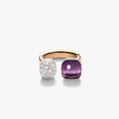 Wenn ein einziger Stein ein ganzes Spektrum an Gefühlen in sich tragen kann, versteht man die Magie von Nudo. In diesem Jubiläumsmoment feiert Pomellatos ikonischste Kreation Farbe in perfekter Harmonie – Edelsteine, die im idealen Gleichgewicht miteinander schwingen. Der Nudo Toi et Moi Ring aus 18-karätigem Rosé- und Weißgold bringt Farbe und Licht in Balance: Ein lebhafter Amethyst in Classic-Größe trifft auf die ikonische Nudo Silhouette in Petit, zum Strahlen gebracht durch Pavé aus weißen Diamanten auf rhodiniertem Weißgold. Das Spiel von Proportion und Oberfläche verleiht dem Ring eine klare, grafische Handschrift – selbstbewusst solo getragen, und im Stack perfekt abgestimmt.