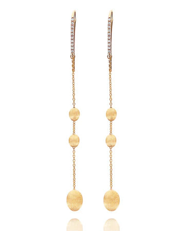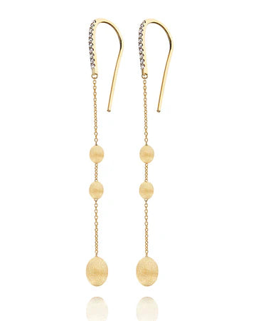 Goldene Regentropfen - diese Ohrringe aus 18kt Gold und Diamanten verleihen eurem Look einen Hauch von Klasse und Bewegung.