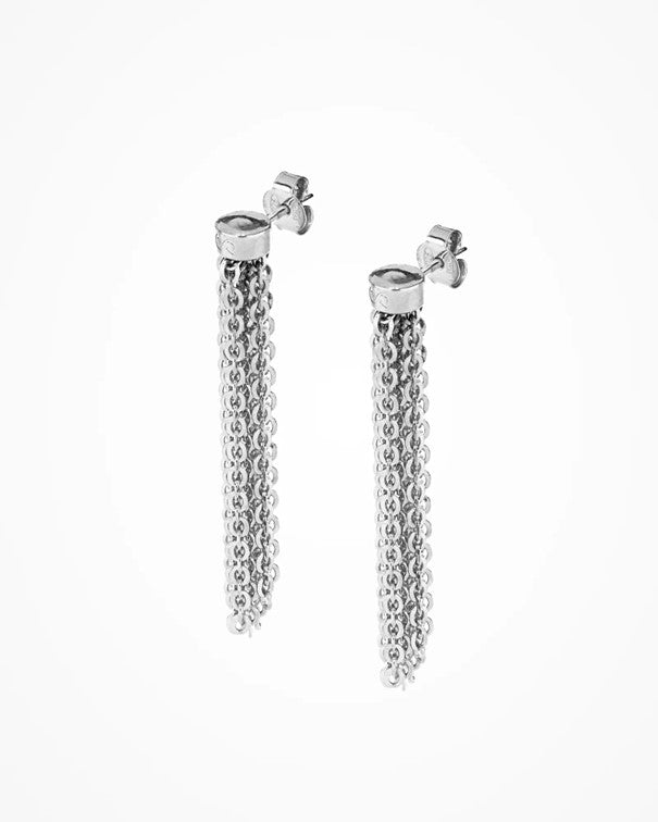 Mehrreihige Ohrringe aus Silber mit winzigen runden Ketten, die sich frei bewegen.