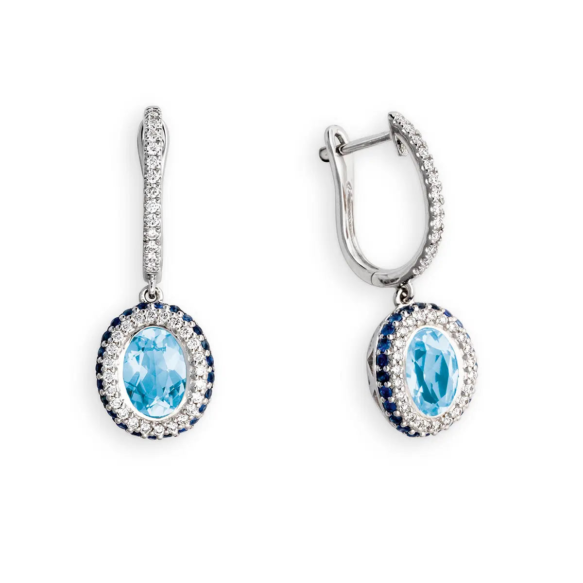 Ohrringe in 18 kt Weißgold mit Topas Steinen und Saphiren, Brill. 0,38 ct. W/si.