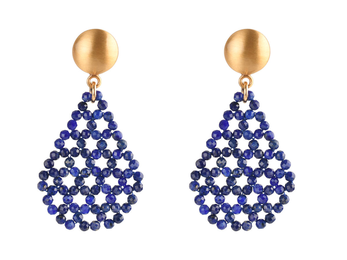 Ohrstecker Silber vergoldet mit Lapislazuli, handgefertigt in Österreich