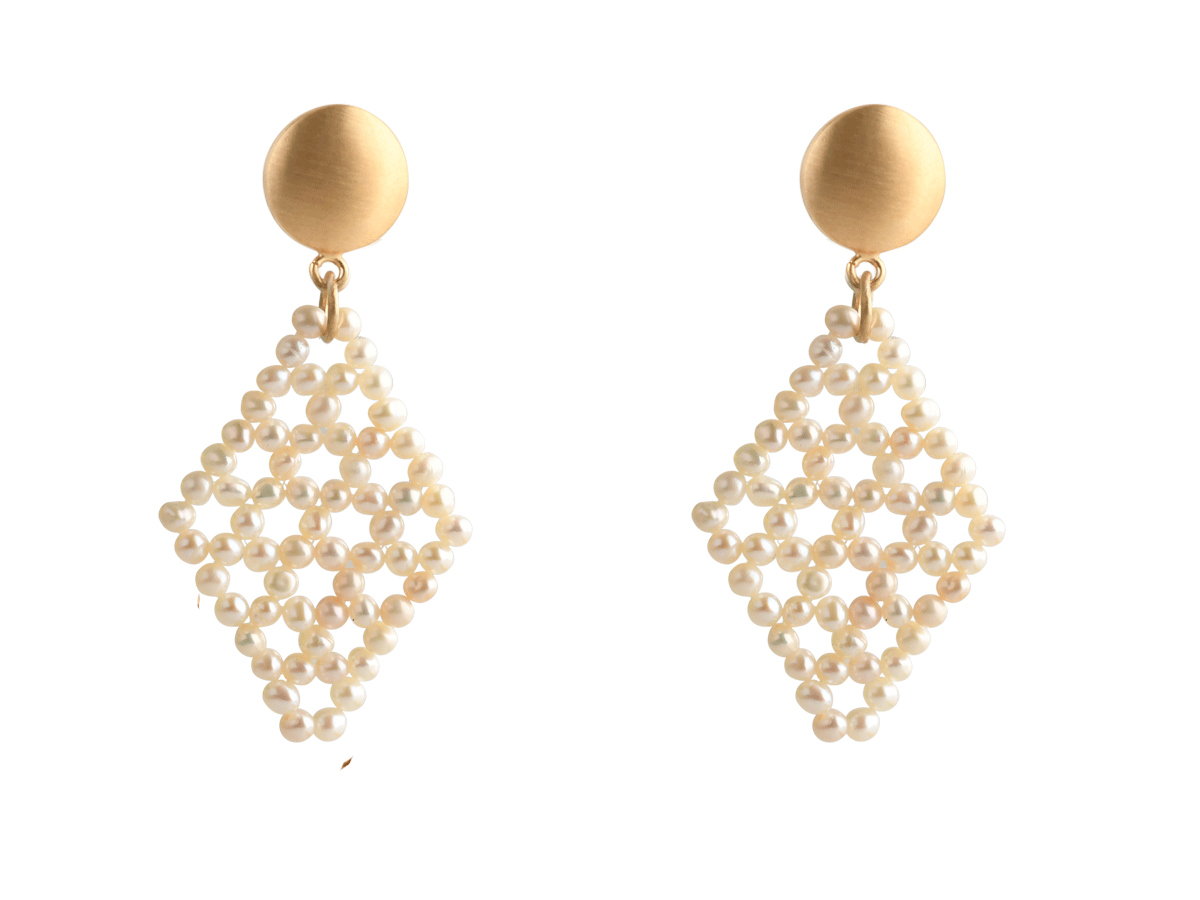 Ohrstecker Silber vergoldet mit Süßwasser-Zuchtperlen, handgefertigt in Österreich.