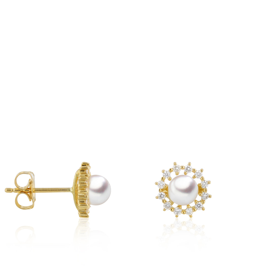 Ohrstecker in 18 kt Gelbgold mit Akoya Perlen 4,5-5,0mm und Brill. 0,24 ct. W/si.