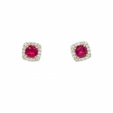 18kt Gelbgold Ohrstecker mit 2 Rubine 0,52ct total und Brillanten 0,14ct W/si