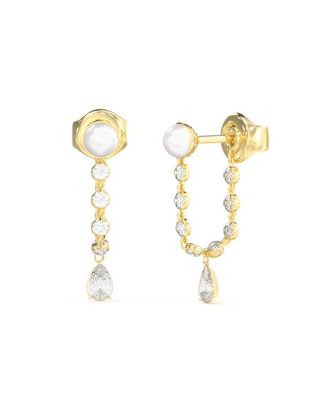 Ohrstecker aus vergoldetem Edelstahl, mit weißen Kristallen und Perlen.