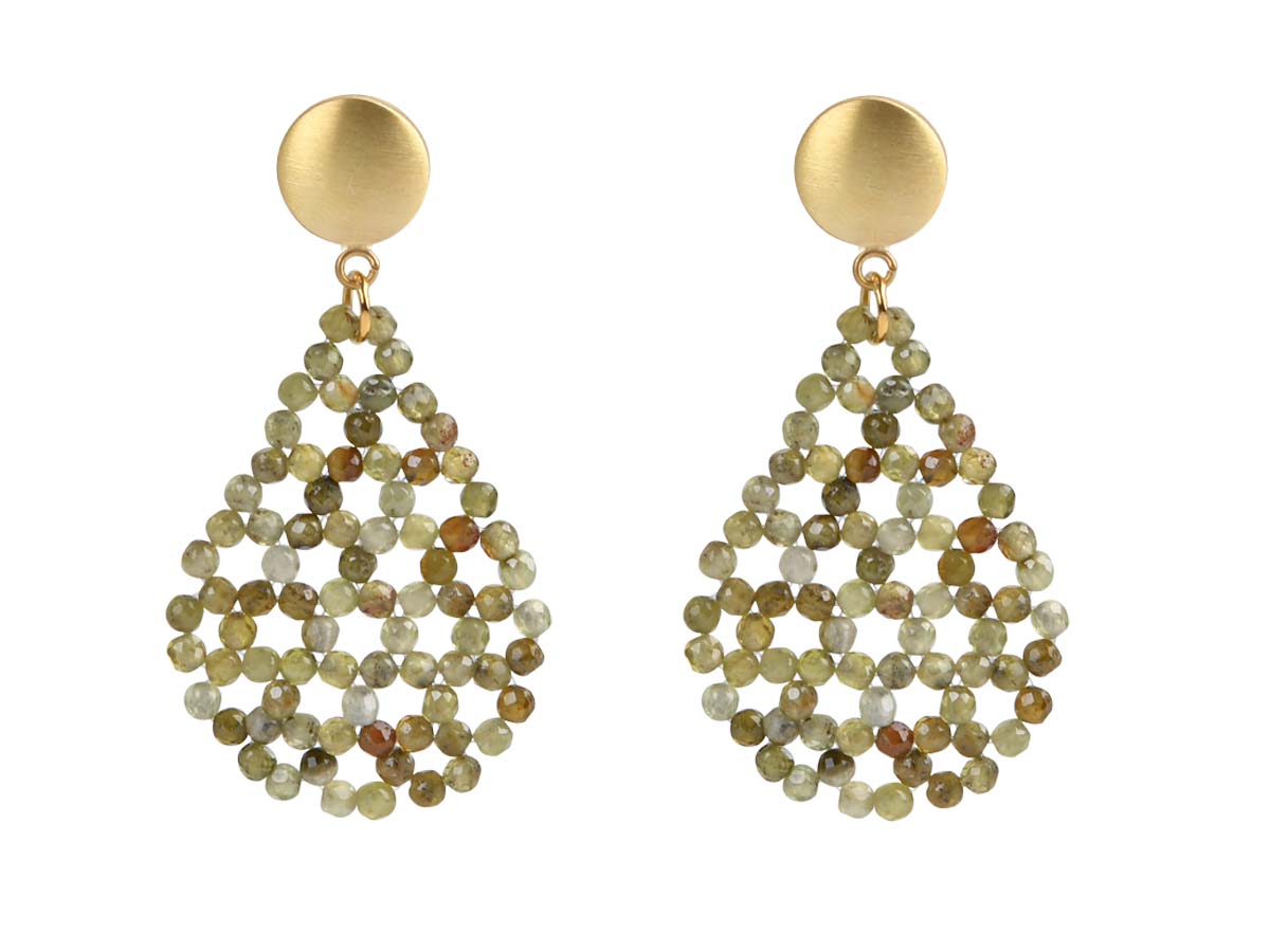 Ohrstecker Silber vergoldet mit grünem Granat, handgefertigt in Österreich.