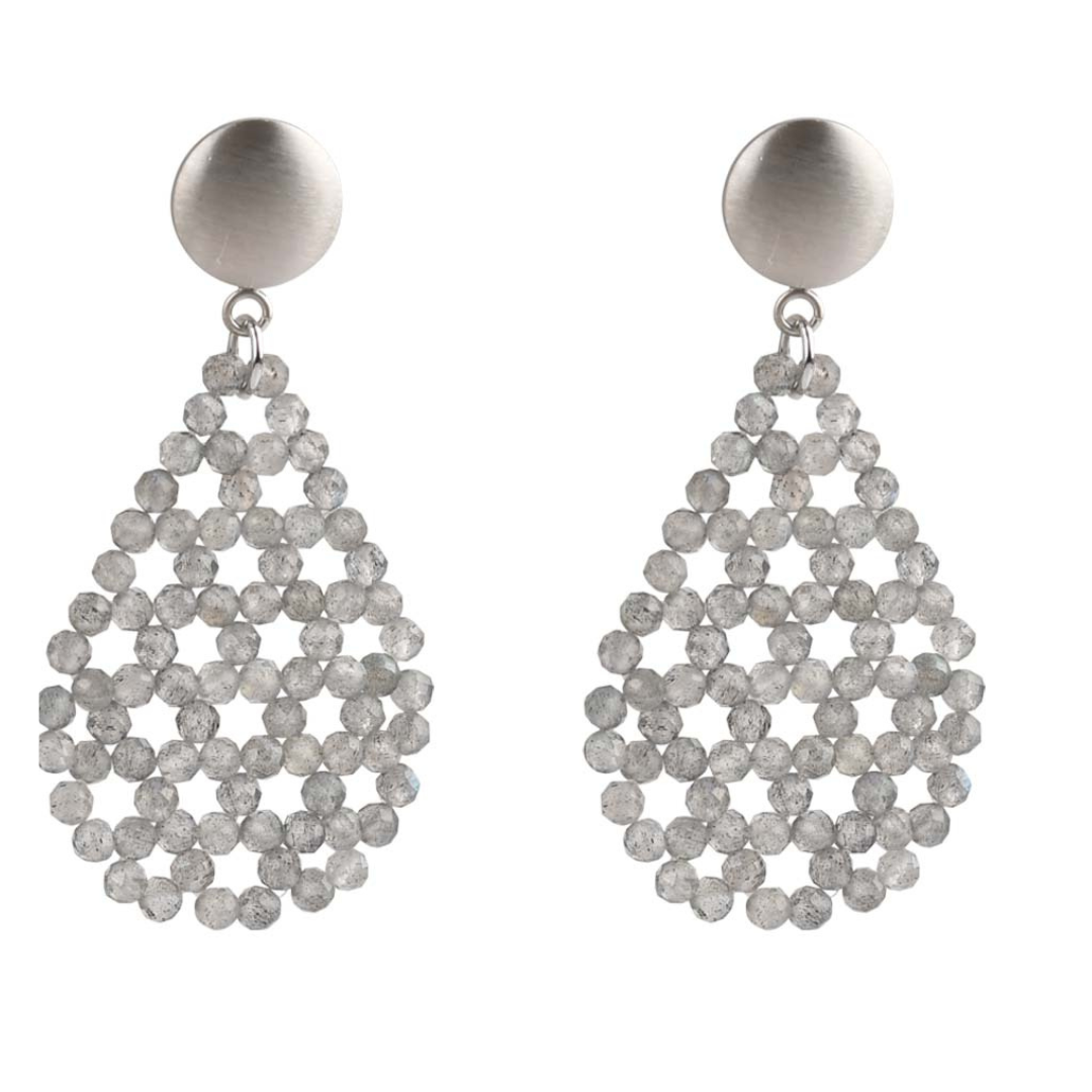 Ohrstecker Silber satiniert. Geheimnisvoll und modern – Labradorit und Rauchquarz spielen mit Licht und Tiefe....