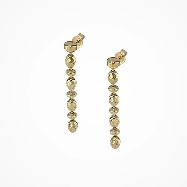 Silberne rosevergoldete, hängende Ohrstecker aus vier dünnen Perlenketten, die miteinander verbunden sind. Die diamantgeschliffenen Perlen...