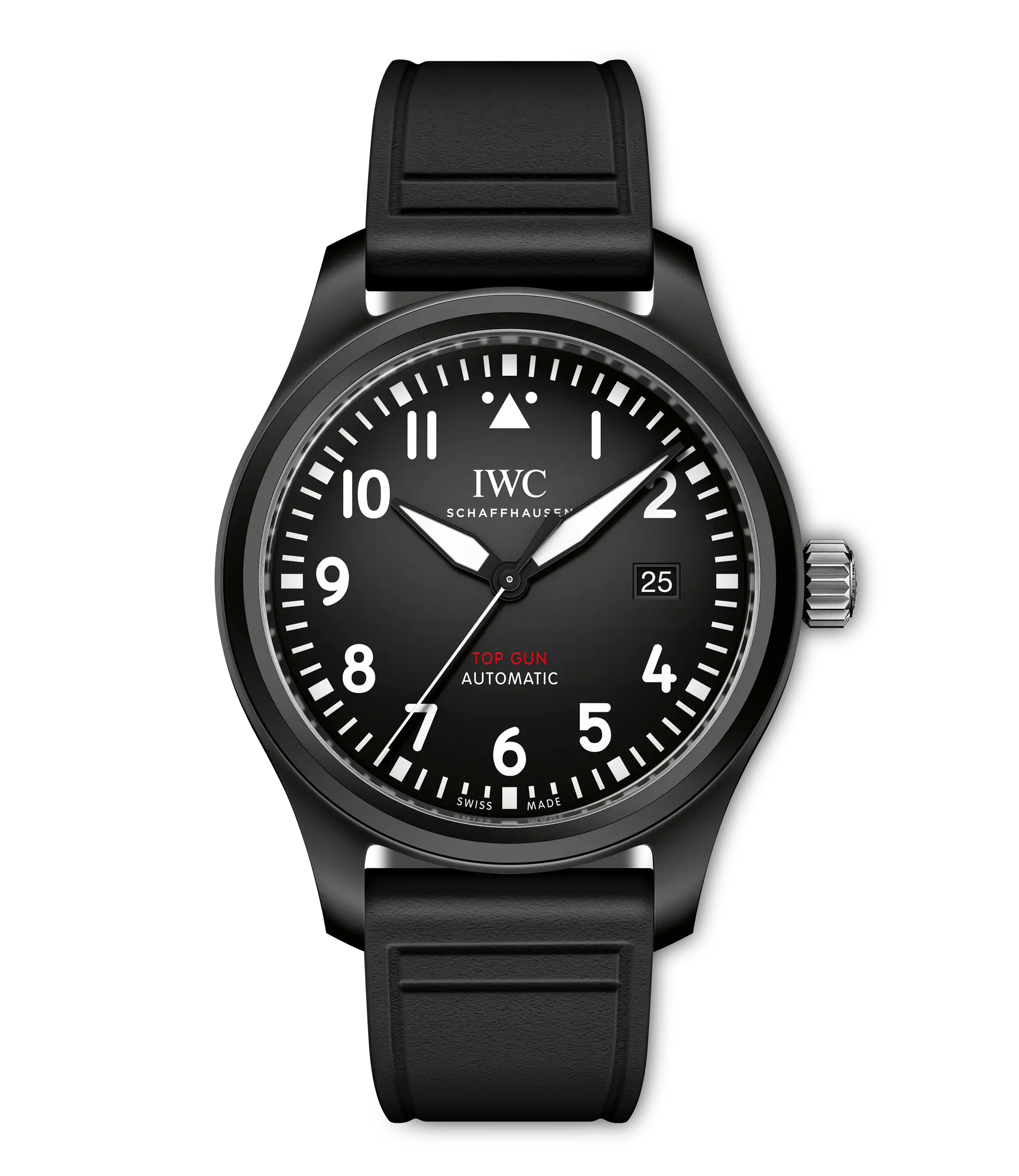 Eine funktionale und reduzierte Fliegeruhr: Die Pilot´s Watch Automatic Top Gun ist mit einem IWC-Manufakturwerk aus der neuen Kaliberfamilie 32000 ausgestattet. Kurvenreiche Manöver mit Überschalljets wie einer F/A-18 Hornet, monatelange Einsätze auf dem Flugzeugträger: In der Marinefliegerei sind die Anforderungen an Mensch und Material extrem hoch. Top-Gun-Uhren werden mit robusten und korrosionsbeständigen Materialien wie Keramik und Titan speziell für die spezifischen Bedürfnisse der Elite der Navy-Piloten konstruiert. Die Pilot´s Watch Automatic Top Gun ist mit dem IWC-Manufakturkaliber 32111 ausgestattet. Das robuste und zuverlässige Automatikwerk verfügt über einen beidseitig aufziehenden Klinkenaufzug und bietet eine Gangreserve von 120 Stunden. Mit einem Durchmesser von 41mm passt die sportliche Uhr in einem Gehäuse aus nicht reflektierender, schwarzer Zirkonoxid-Keramik perfekt an jedes Handgelenk.