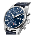 Die Pilot´s Watch Chronograph 41 überzeugt mit Vielseitigkeit und einem sportlichen Design. Seit 1994 sind Chronographen eine tragende Säule der Fliegeruhren-Kollektion von IWC. Das Zifferblatt mit den verschiedenen Zählern unterstreicht nicht nur das typische Instrumenten-Design. Die mechanische Stoppuhr bietet auch nahezu unbegrenzte Anwendungsmöglichkeiten im Alltag. Die Pilot´s Watch Chronograph 41 in einem ergonomischen Durchmesser von 41mm wird vom IWC-Manufakturkaliber 69385 angetrieben. Das robuste und präzise Chronographenwerk mit Kolonnenrad ist durch den Saphirglasboden sichtbar. Dieses Modell verfügt über ein Edelstahlgehäuse, ein blaues Zifferblatt, rhodinierte Zeiger und ein dunkelblaues Kalbslederband. Das integrierte EasX-CHANGE System ermöglicht es, das Armband im Handumdrehen zu wechseln. Erhältlich sind Armbänder aus Kalbsleder oder Kautschuk in verschiedenen Farben, aber auch ein hochwertiges Edelstahlarmband mit Feineinstellverschluss. In Kombination mit dem bis 10 bar wasserdichten Gehäuse macht diese Vielseitigkeit den Chronographen zum perfekten Begleiter für jedes Abenteuer – nicht nur im Cockpit.