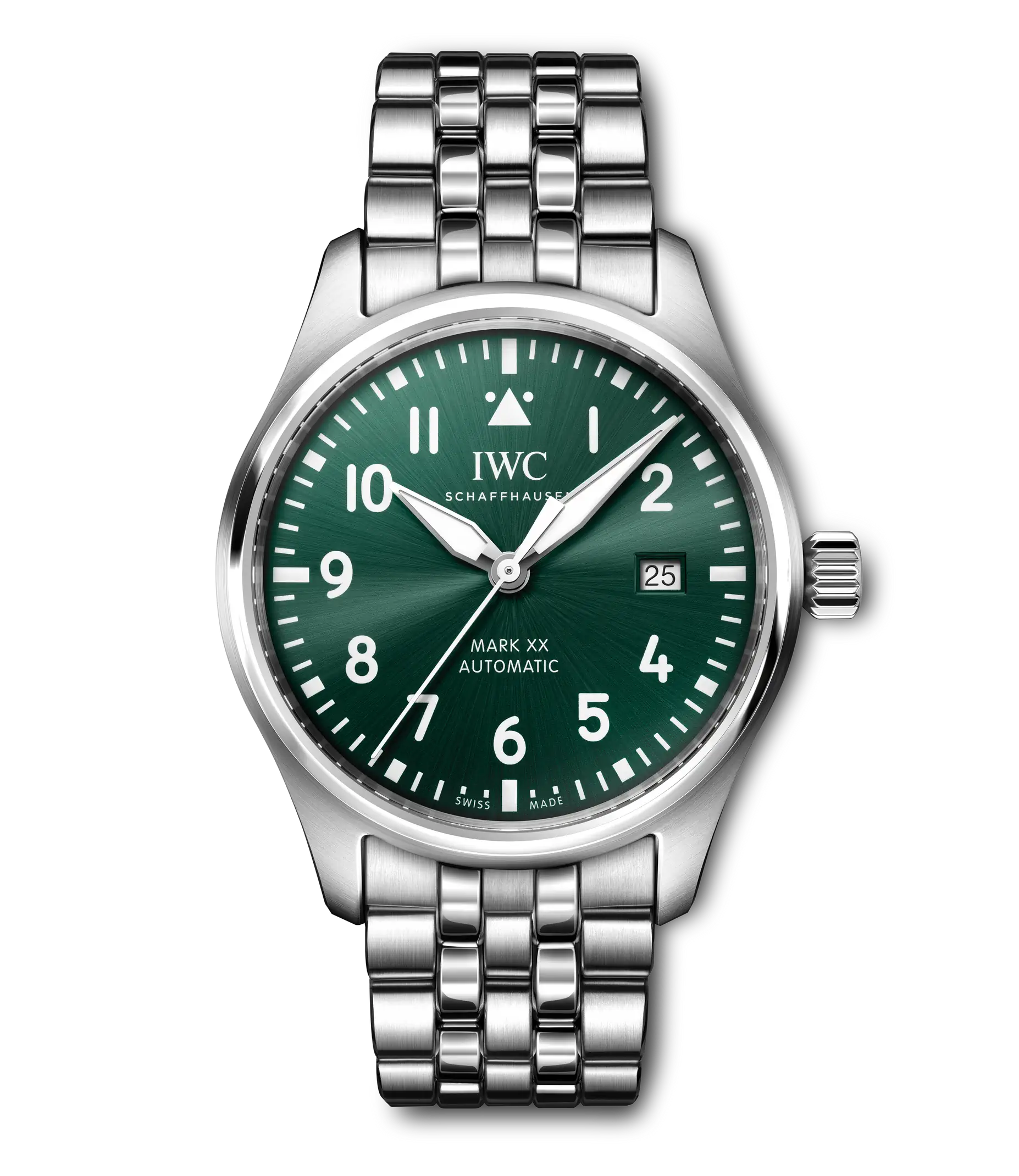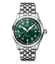 Die Pilot´s Watch Mark XX besticht mit ihrem utilitaristischen Tool-Watch-Design und dem IWC-Manufakturkaliber 32111. Weniger ist mehr: Die Mark XX reduziert das Design und die technische Funktionalität einer Fliegeruhr auf die pure Essenz. Sie ist die Nachfolgerin der legendären Mark 11, einer präzisen amagnetischen Instrumentenuhr, die IWC im Jahr 1948 für die Navigatoren und Piloten der British Royal Air Force entwickelt hat. Diese Variante verfügt über ein robustes und korrosionsbeständiges Gehäuse aus Edelstahl in einem Durchmesser von 40mm, ein grünes Zifferblatt sowie rhodinierte Zeiger. Das kontrastreiche Zifferblatt mit weißen Zahlen und Indizes, dem Markierungsdreieck bei 12 Uhr und Leuchtelementen ist bei allen Lichtverhältnissen einfach ablesbar. Für Präzision sorgt das IWC-Manufakturkaliber 32111 mit Automatikaufzug und einer Gangreserve von 120 Stunden. Das Saphirglas ist speziell gesichert, damit es sich bei einem plötzlichen Druckabfall nicht von seinem Platz lösen kann. Die Pilot´s Watch Mark XX ist bis 10 bar wasserdicht und wird an einem Edelstahlband getragen. Dank des integrierten EasX-CHANGE® Systems lässt sich das Armband einfach und ohne zusätzliches Werkzeug gegen ein anderes wechseln.