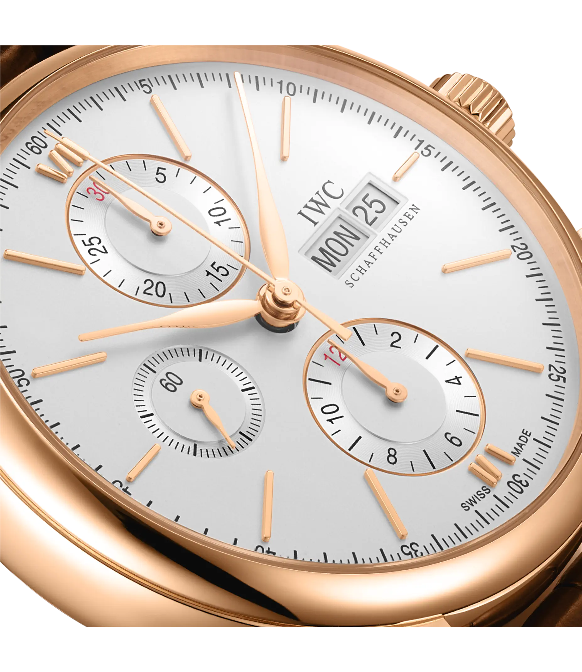 Rotgold 18kt, dunkelbraunes Krokolederband mit Dornschließe, Automatikwerk Kaliber 79320, Gangreserve ca. 44 Stunden, Chronograph, Datums- und Wochentagsanzeige, Durchmesser 42mm, spritzwassergeschützt, zwei bzw. acht Jahre Garantie