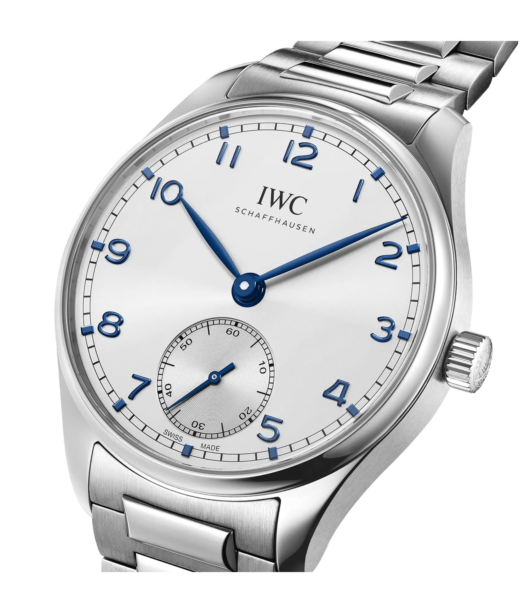 Das hochwertige Edelstahlarmband macht die Portugieser Automatic 40 zu einem enorm vielseitigen Zeitmesser und verleiht ihr eine sportliche Note. Edelstahl ist robust und praktisch für den täglichen Gebrauch, aber auch korrosionsbeständig und unempfindlich gegenüber Feuchtigkeit, Schweiss und Meerwasserspritzern. Diese Eigenschaften machen ihn zu einem idealen Material für das Gehäuse und das Armband einer Uhr. Diese neue Version der Portugieser Automatic 40 ist mit einem 3-gliedrigen Edelstahlarmband mit polierten und satinierten Oberflächen ausgestattet. Das Armband verleiht der Uhr einen frischen und modernen Look und macht sie noch vielseitiger und sportlicher als je zuvor. Dank der integrierten Doppel-Faltschließe sitzt es mittig am Handgelenk und bietet einen hohen Tragekomfort. Das Armband passt zudem hervorragend zum Edelstahlgehäuse und dem versilberten Zifferblatt mit blauen Zeigern und Appliken. Das klare und offene Zifferblattdesign mit der kleinen Sekunde bei 6 Uhr ist direkt von der ersten Portugieser aus den späten 1930er Jahren inspiriert. Im Inneren tickt das Manufakturkaliber 82200, das sich auch durch den Saphirglasboden bewundern lässt. Der Pellaton-Aufzug wurde mit Komponenten aus nahezu verschleißfreier Keramik verstärkt. Es nutzt beide Drehrichtungen des Rotors zum Aufziehen der Zugfeder und baut eine Gangreserve von bis zu 60 Stunden auf.