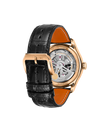 Rotgold, schwarzes Krokolederband mit Dornschließe, Manufaktur-Automatikwerk Kaliber 82200, Gangreserve ca. 60 Stunden, Saphirglas, Saphirglas-Sichtboden, Durchmesser 40,4mm, wasserdicht bis 50m, zwei bzw. acht Jahre Garantie
