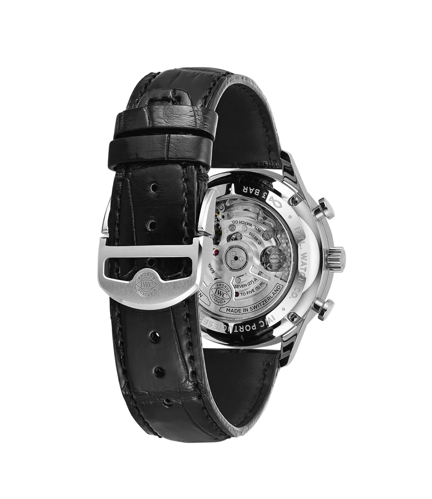 Edelstahl, schwarzes Krokolederband mit Doppel-Faltschließe, Manufaktur-Automatikwerk Kaliber 69355, Gangreserve ca. 46 Stunden, Chronograph, Saphirglas, Saphirglas-Sichtboden, Durchmesser 41mm, spritzwassergeschützt, zwei bzw. acht Jahre Garantie