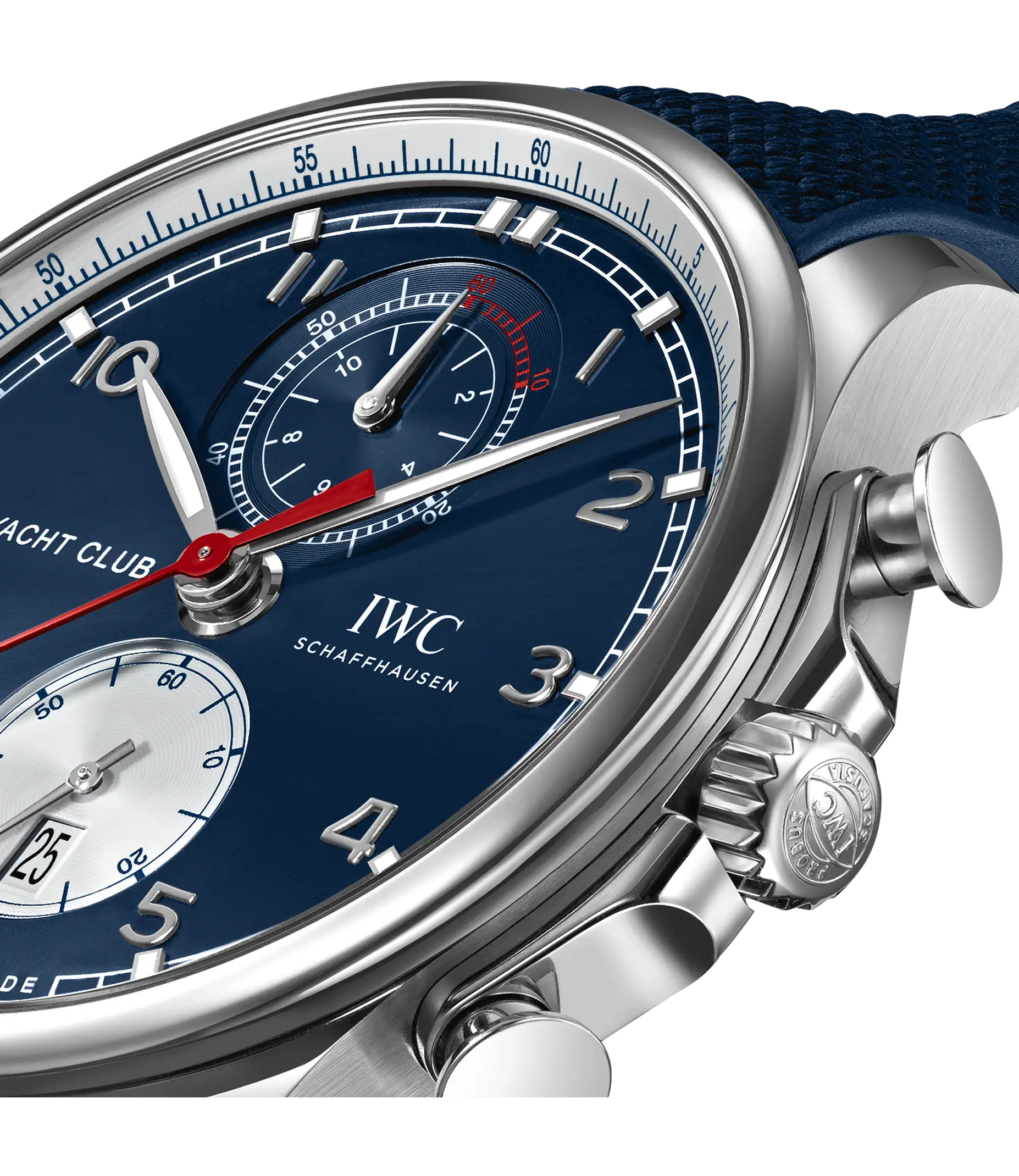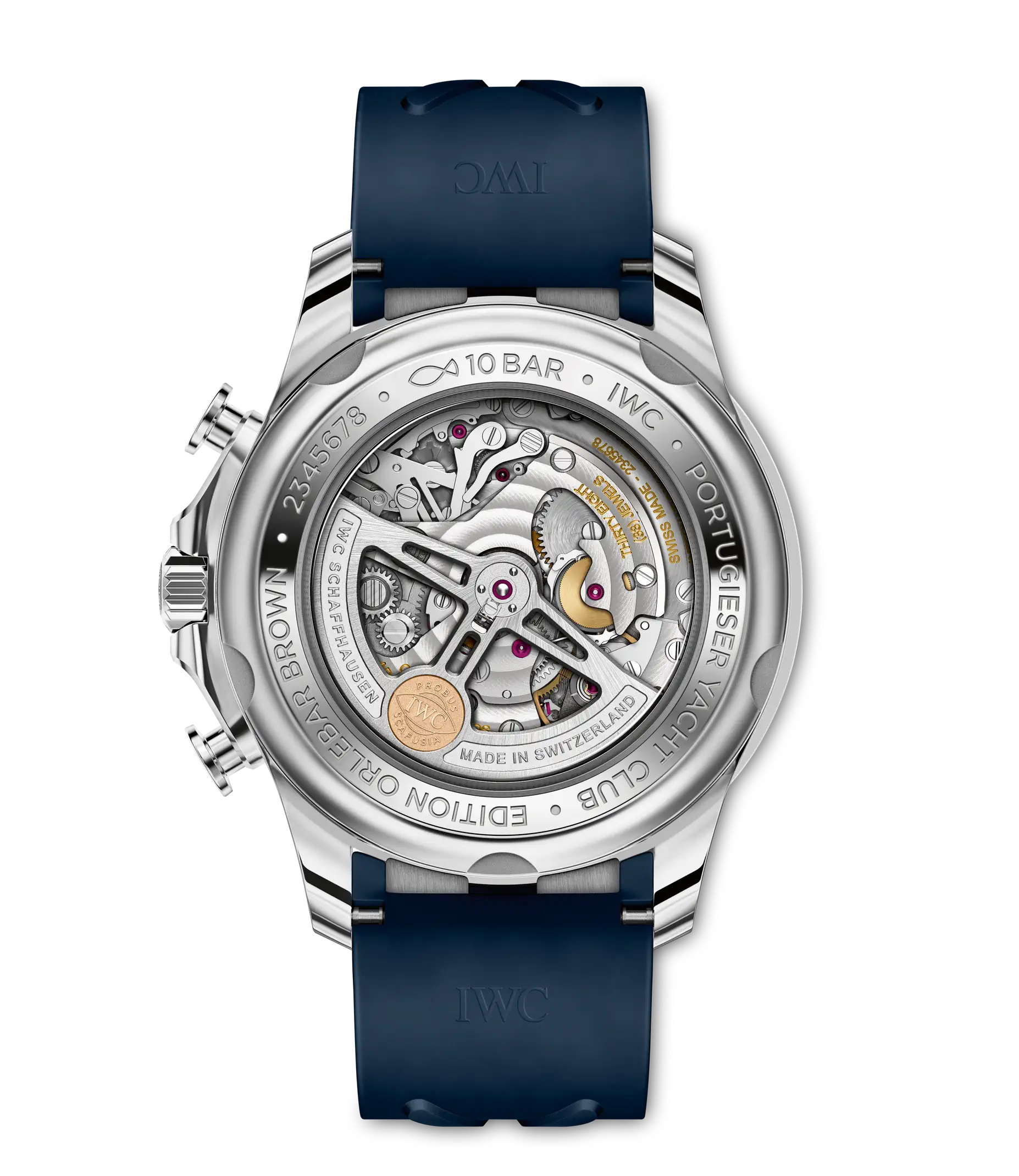 Dank ihrer robusten Bauweise und Wasserdichtigkeit ist die Portugieser Yacht Club Chronograph der perfekte Begleiter auf Deck und an Land. Als nautische Sportuhr verbindet die Portugieser Yacht Club Chronograph zeitlose Eleganz mit Robustheit und einer Wasserdichtigkeit von 100m. Diese Eigenschaften machen sie zu einem vielseitig einsetzbaren Zeitmesser, der sowohl auf dem Wasser als auch an Land eine hervorragende Figur macht. Die filigrane Lünette und der flache Gehäusering verleihen dem Edelstahlgehäuse mit einem Durchmesser von 44,6mm besonders elegante Proportionen. Das Zifferblatt dieses sportlichen Chronographen besticht mit den typischen Portugieser-Designmerkmalen wie der charakteristischen Minutenskala und den applizierten, arabischen Zahlen. Das IWC-Manufakturkaliber 89361 mit Flyback-Funktion stellt die gestoppten Stunden und Minuten kombiniert auf einem Compteur bei «12 Uhr» dar und bietet eine Gangreserve von 68 Stunden. Für einen perfekten Sitz am Handgelenk sorgt das hochwertige Edelstahlarmband mit polierten und satinieren Flächen. Dieses Sondermodell entstand in Zusammenarbeit mit Orlebar Brown.
