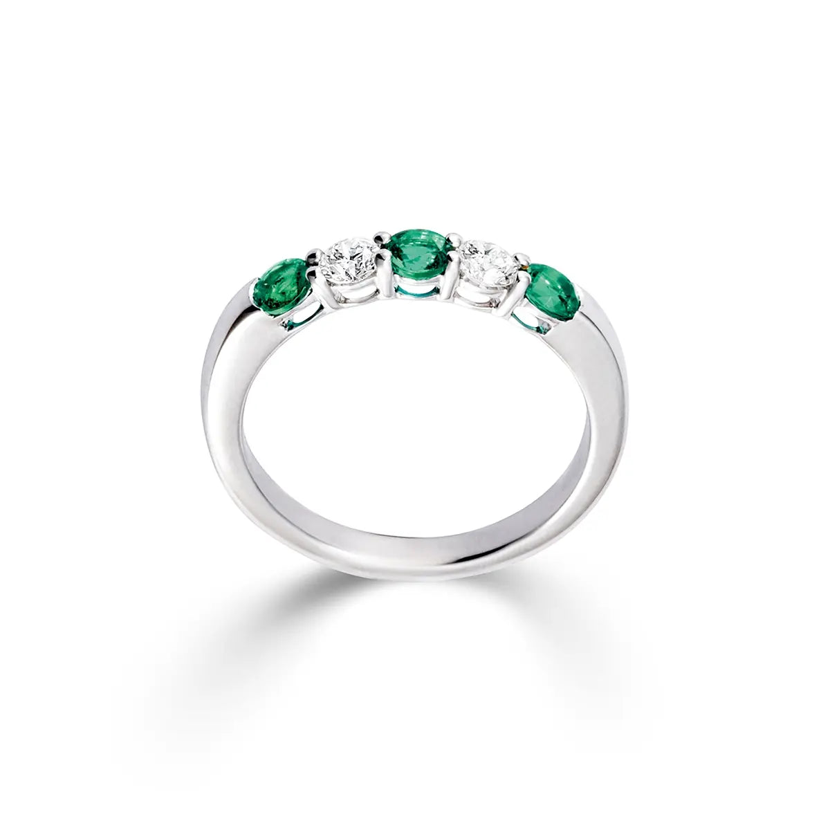 Ring in 18 kt Weißgold mit 3 Smaragden 0,42ct und 2 Brill. 0,27ct FW/si.