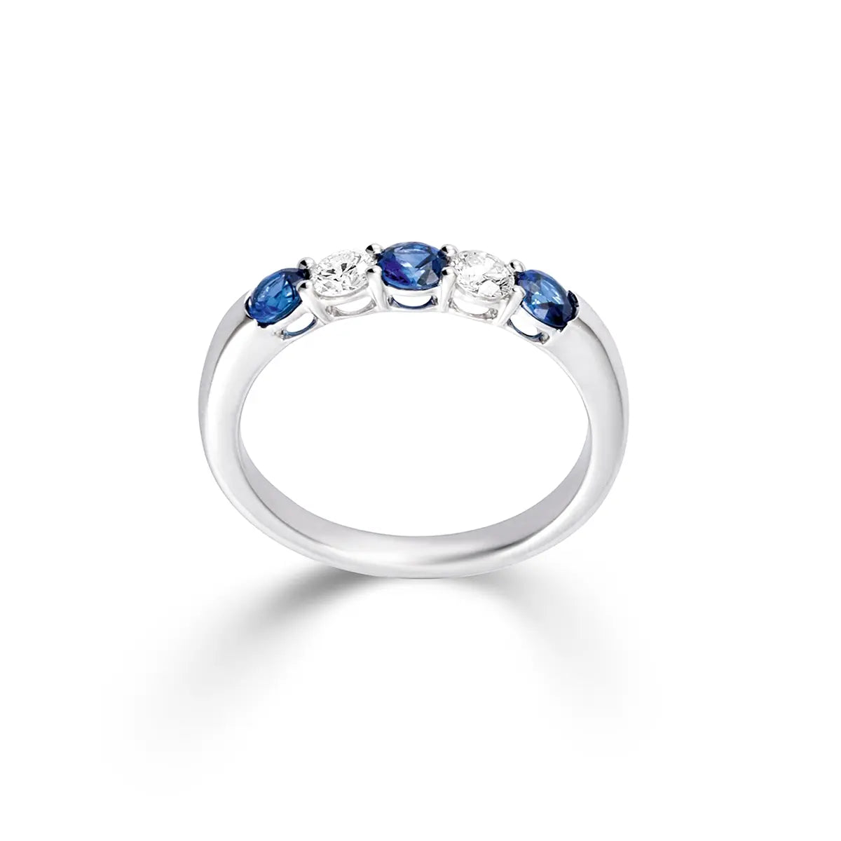 Ring in 18 kt Weißgold mit 3 Saphiren 1,03ct und 2 Brill. 0,25 FW/si.