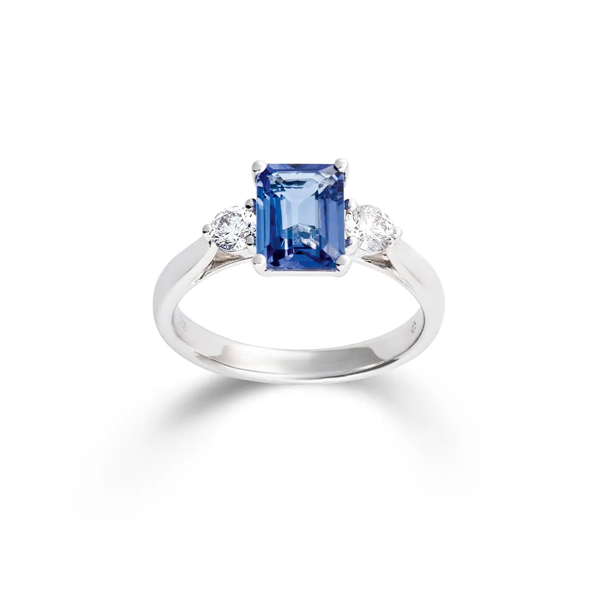 18 kt Weißgold Ring mit 1 Tansanit 1,60ct und 2 Brill. 0,34ct W/si.