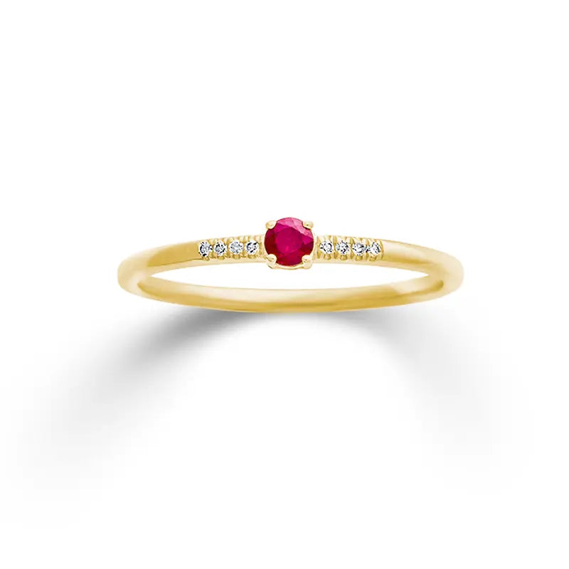 Ring in 14 kt Gelbgold Rubin 0,10ct und Diam. 0,03ct.